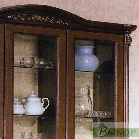 Важное достоинство гостиной «Афина» — наличие шкафов-витрин, украшенных пилястрами и роскошным карнизом. В таком «обрамлении» можно с гордостью демонстрировать гостям столь дорогие сердцу предметы: бабушкин сервиз и старинную вазу, подаренную на юбилей, коллекцию фарфоровых кукол и красивый подсвечник.